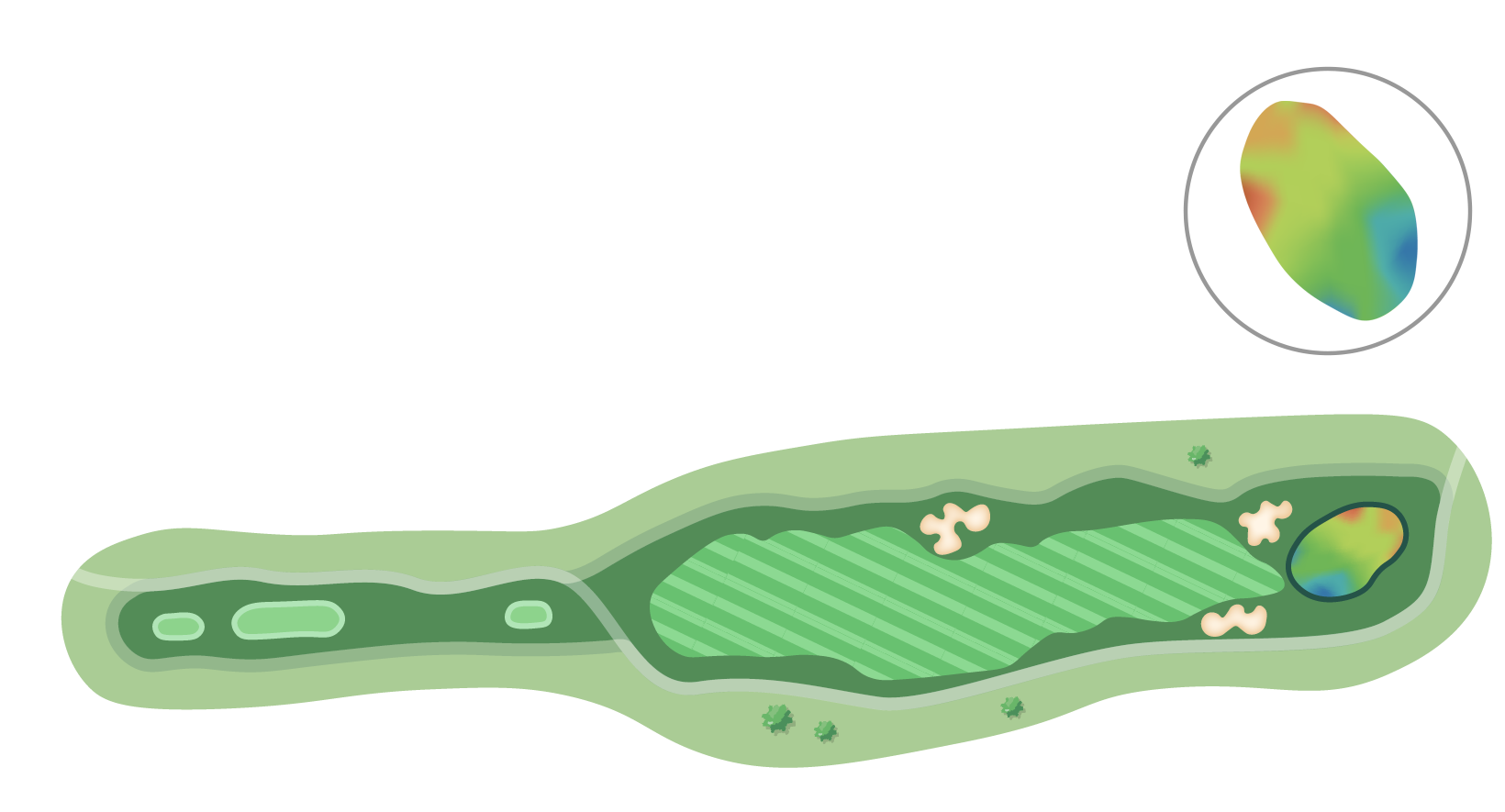 그린 콤플렉스가 좁아 정확한 핀 공략을 요구한다.