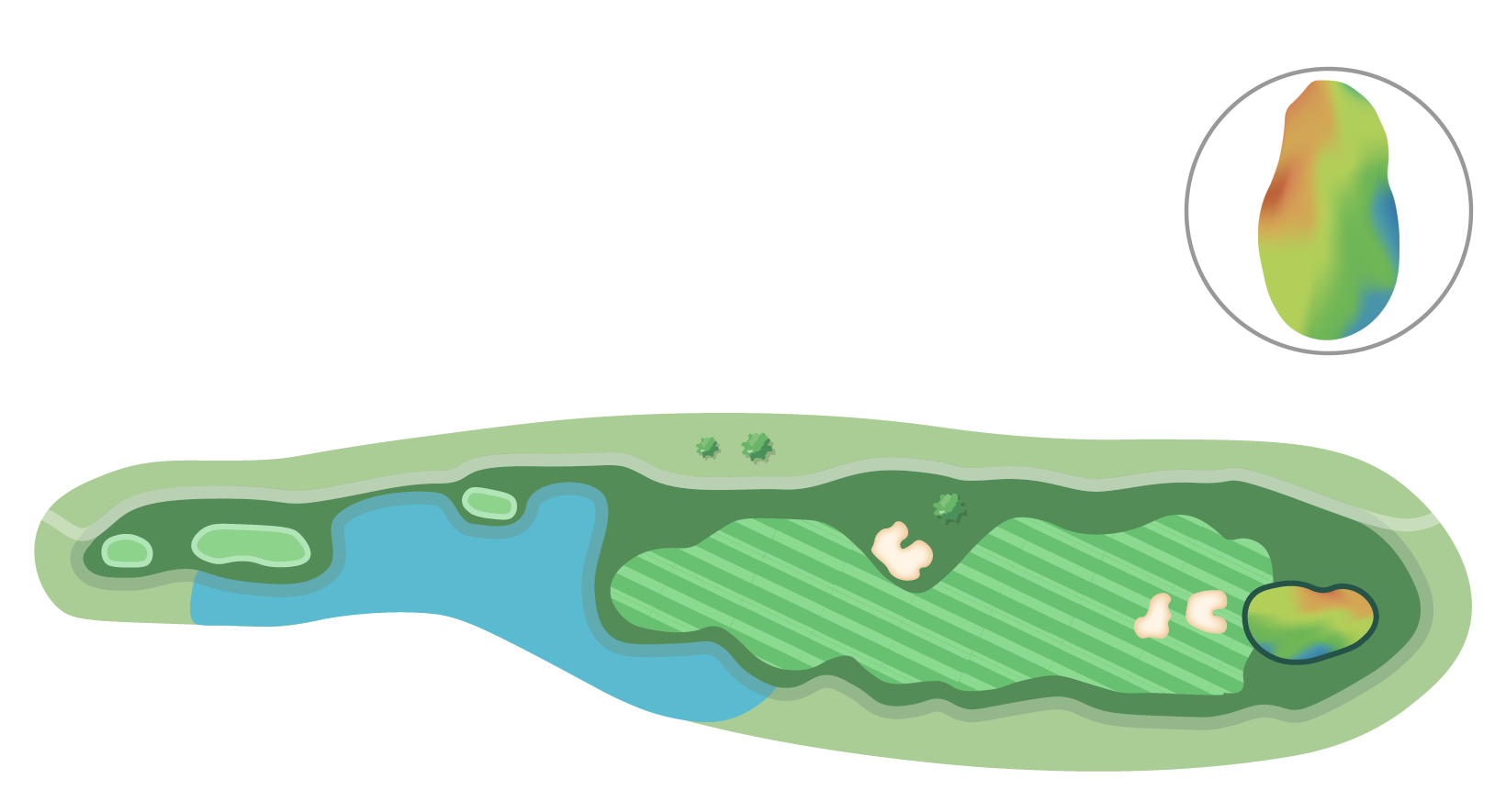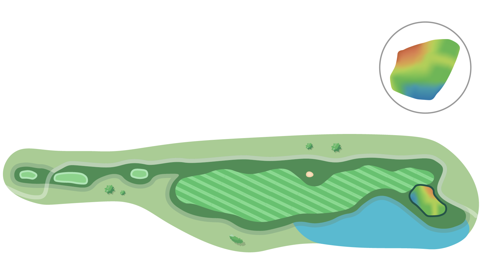 IP 방향으로 공략지점을 설정하면 그린 공략이 무난하나 그린과 맞닿아 있는 워터 해저드가 부담으로 작용할 것이다.