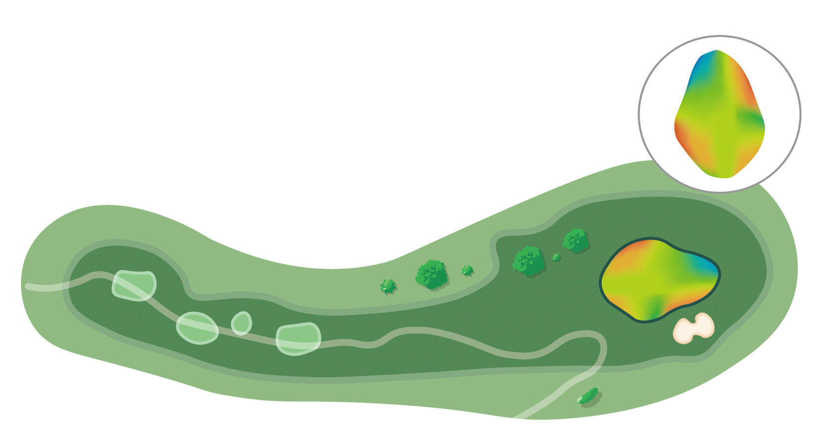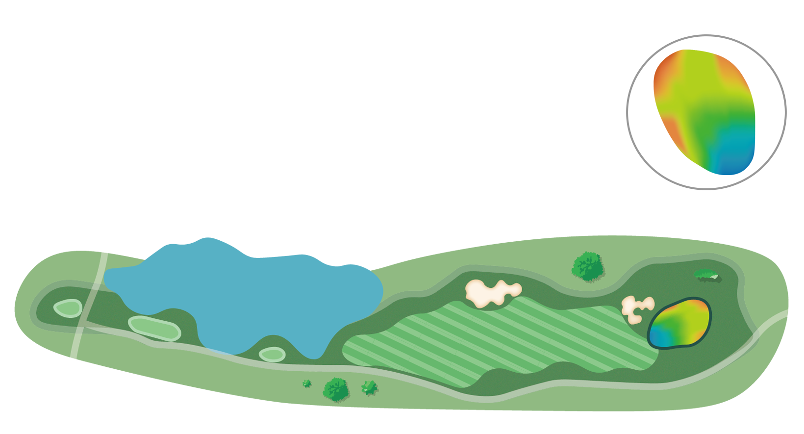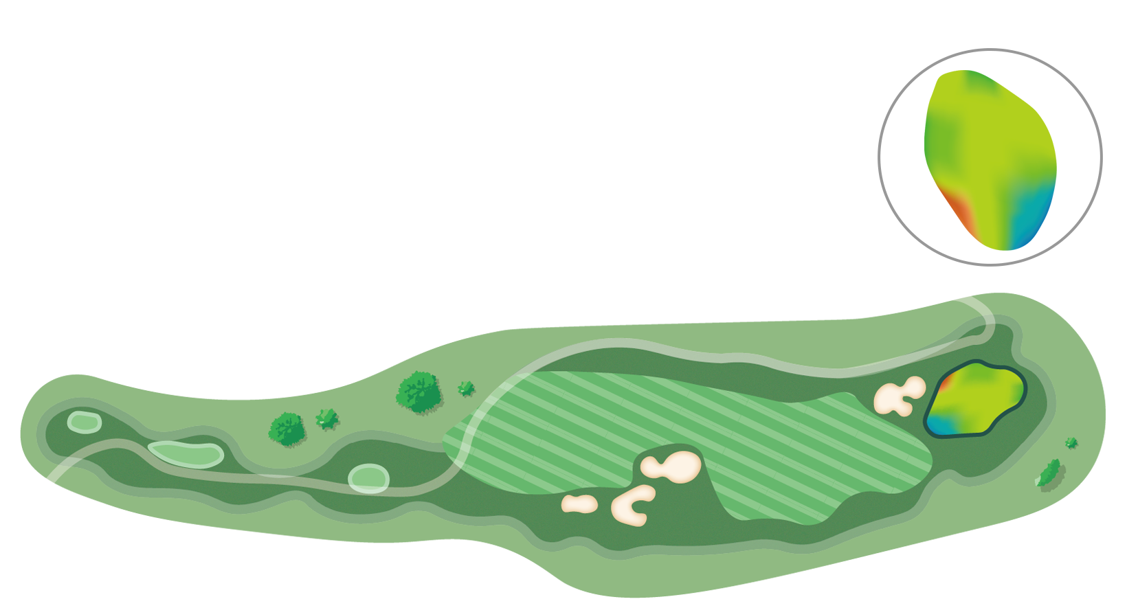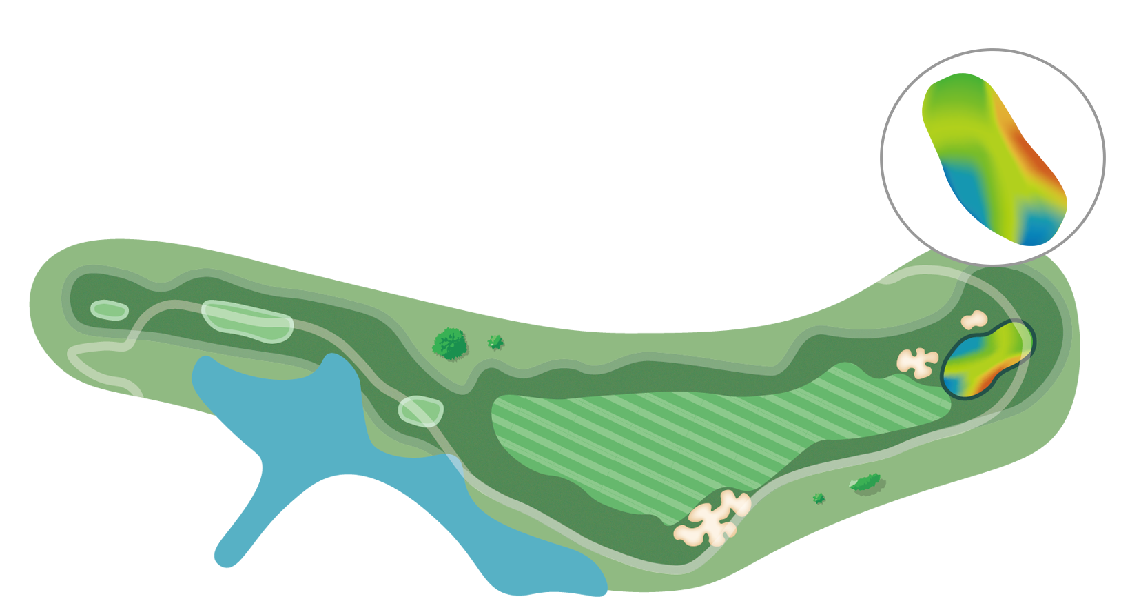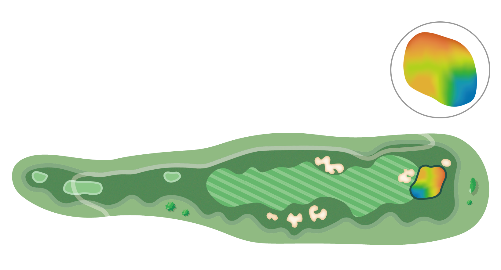방어적인 측면보다 우측공략을 유도하고 그린 공략에도 유리하다.